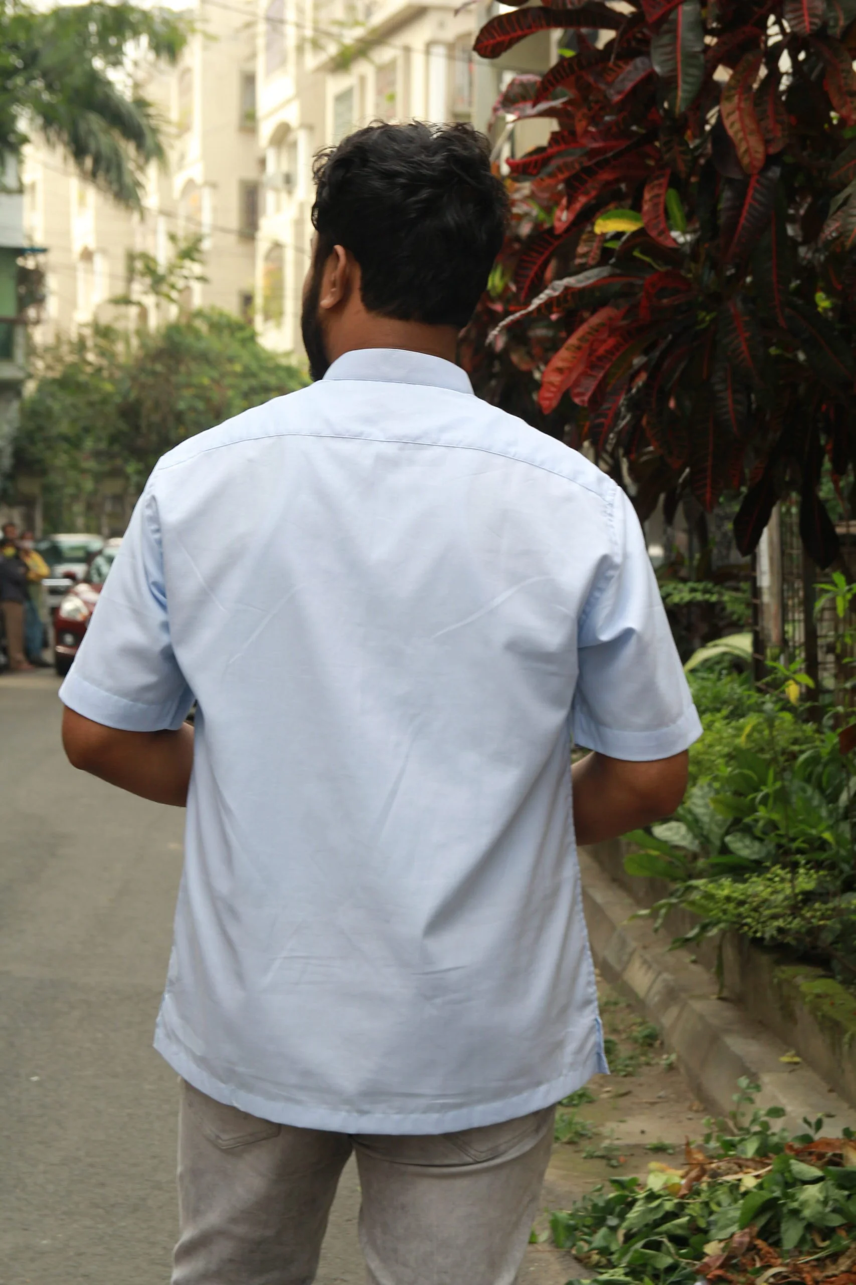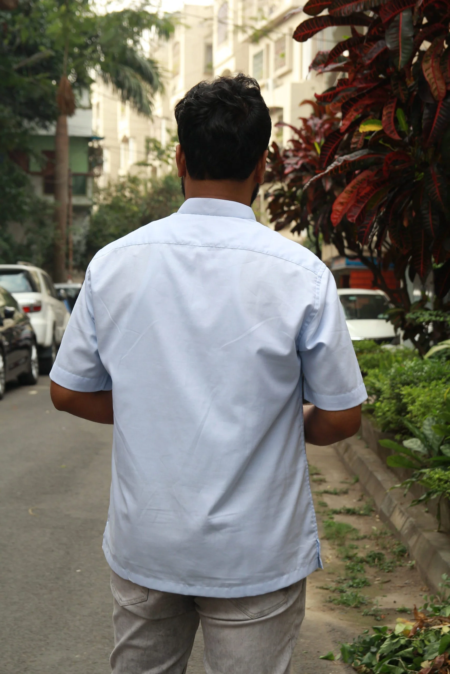 Aakash Blue Chinese Collar Velcro Shirt | Seamless Stitching | Adaptive Clothing for Elderly | 100% Cotton – Half Sleeve