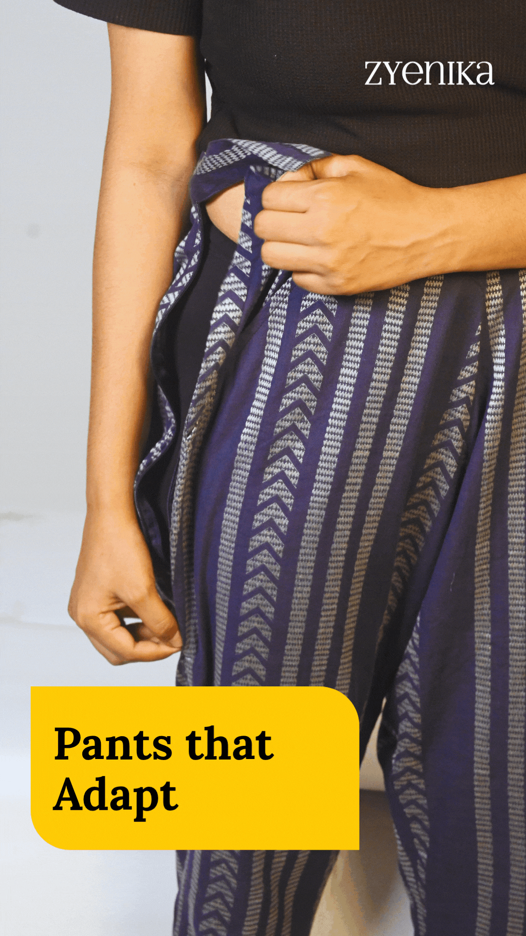 Zye No Bend pants – Ease and Comfort personified. With No Bend HandyLoops and long, discreet zippers on both sides.